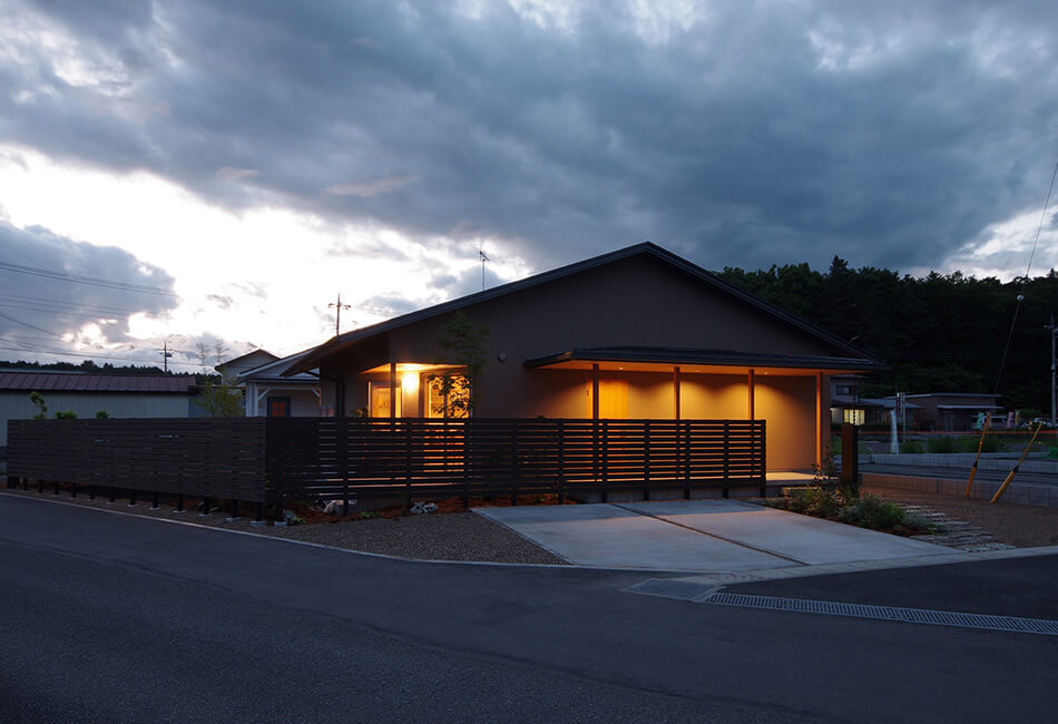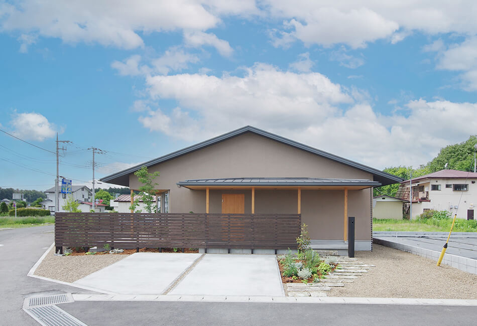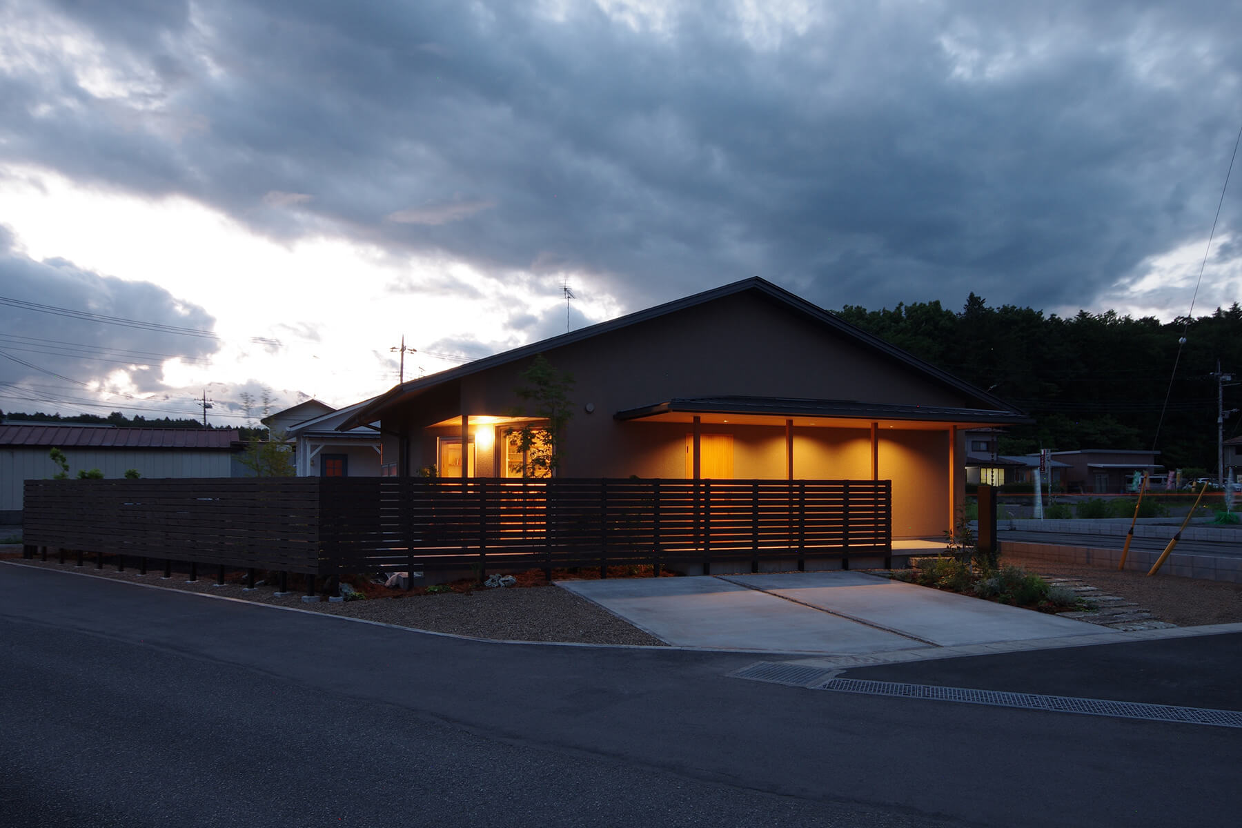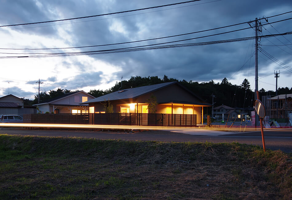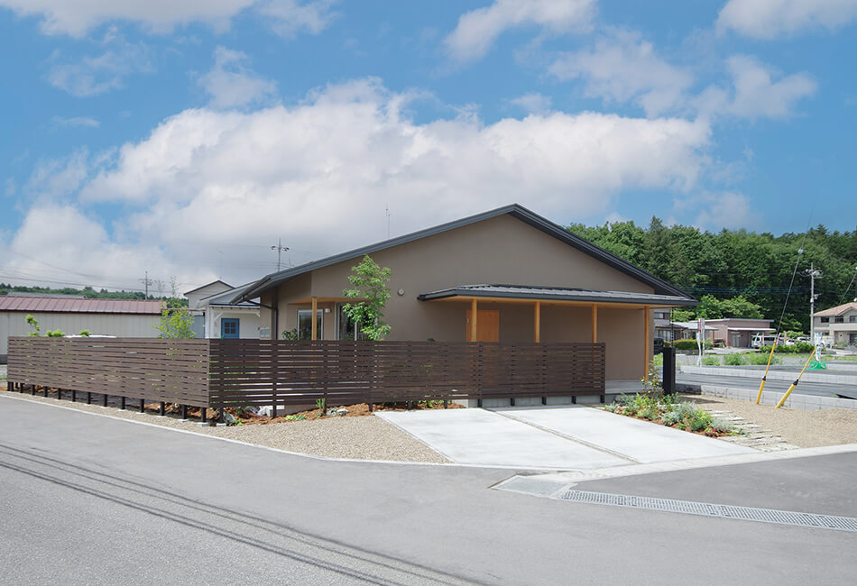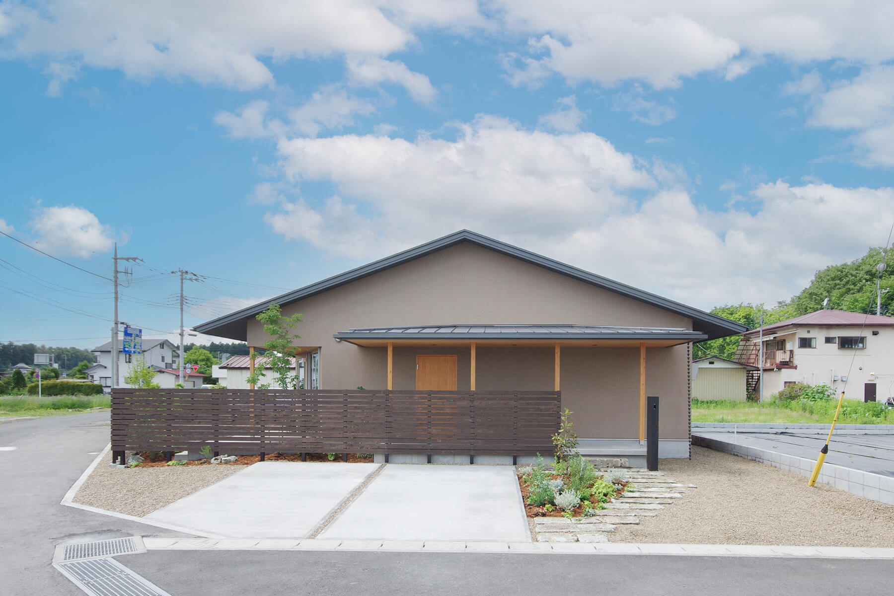 新たに開発された分譲地に建つ平屋の住宅である。この分譲地は比較的広大で全20区画あるが、ここ以外の区画は某建売会社の建物が建ち並ぶ予定である。