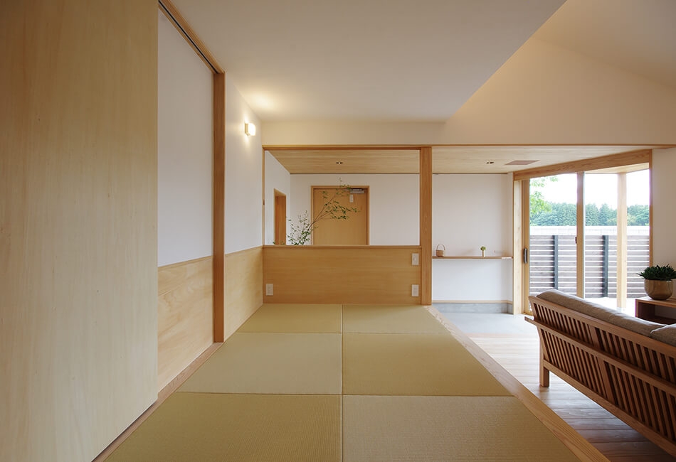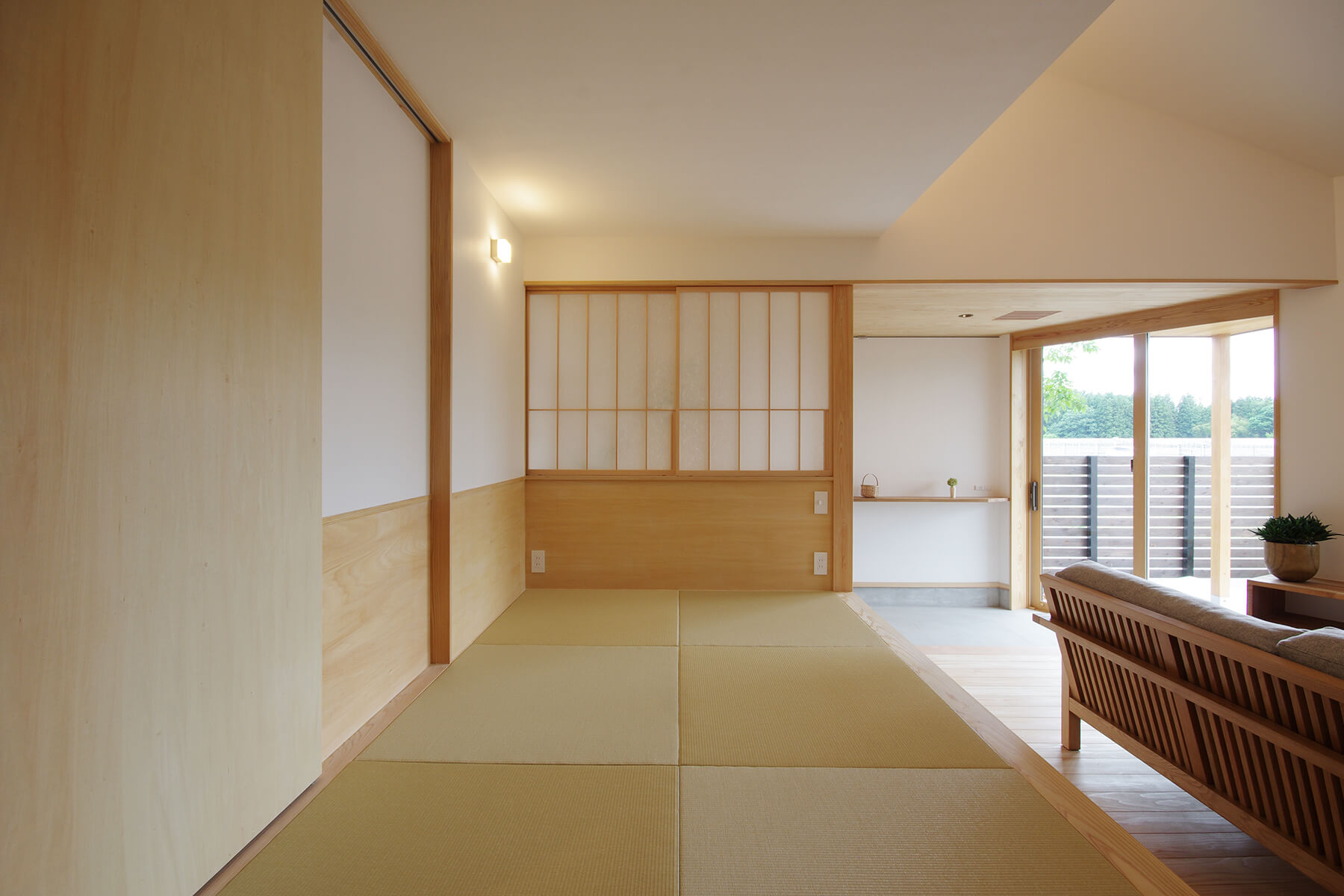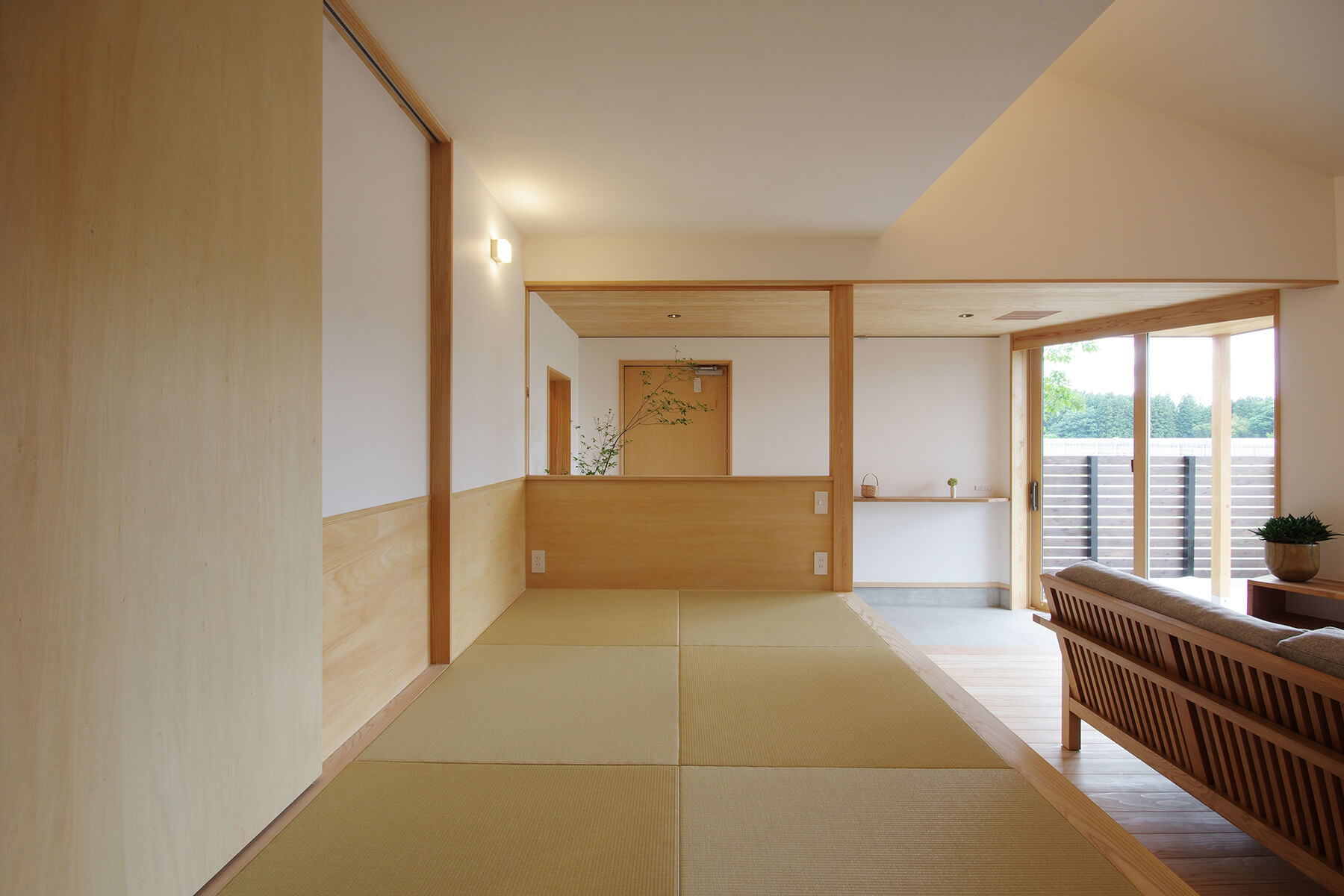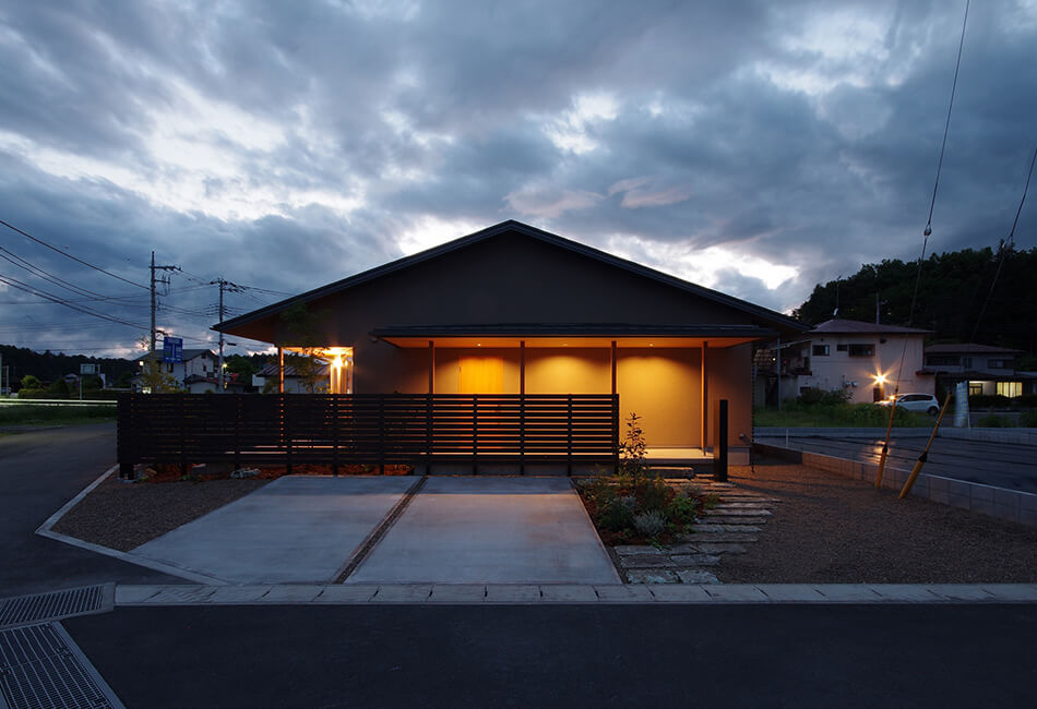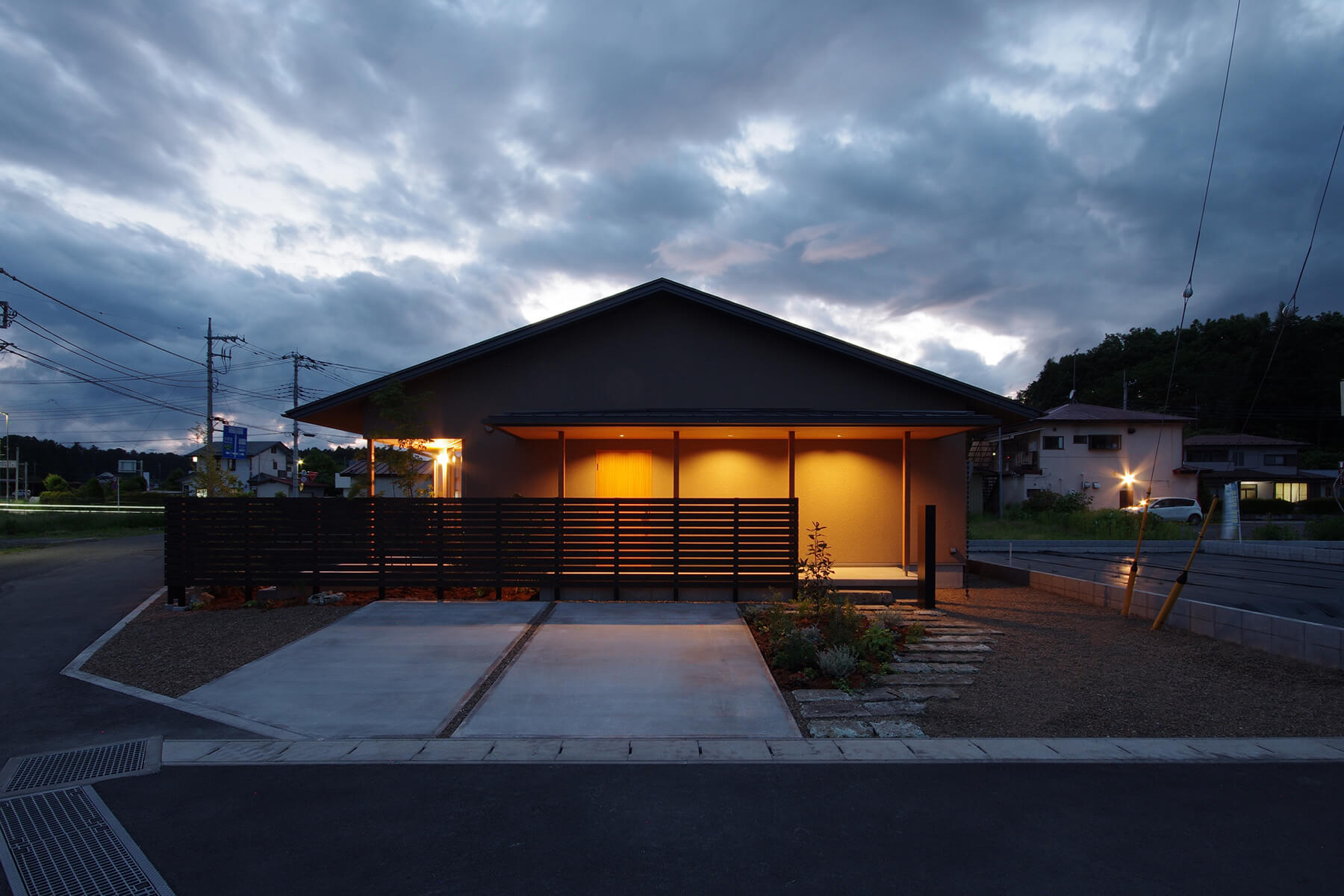 新たに開発された分譲地に建つ平屋の住宅である。この分譲地は比較的広大で全20区画あるが、ここ以外の区画は某建売会社の建物が建ち並ぶ予定である。