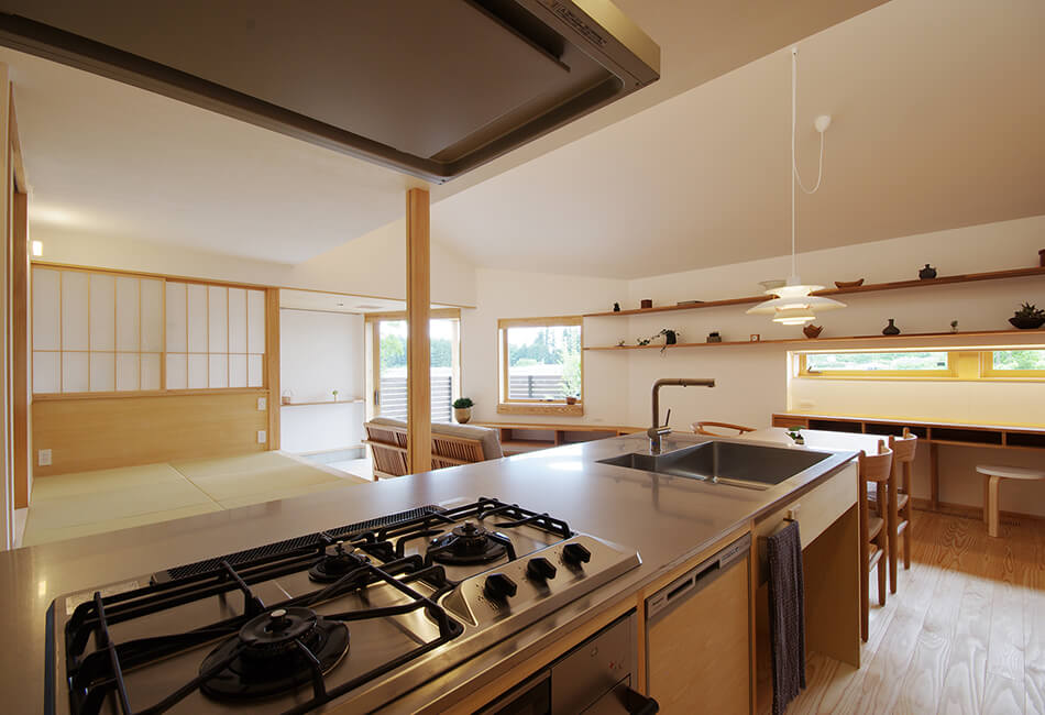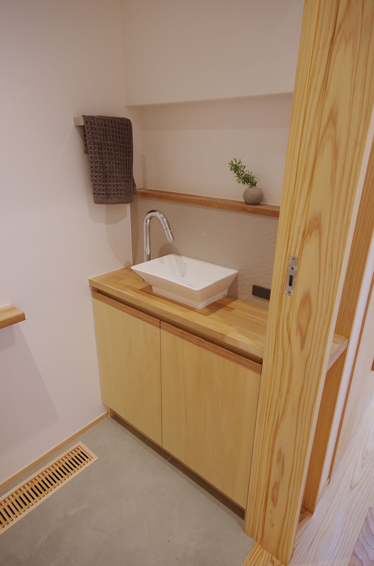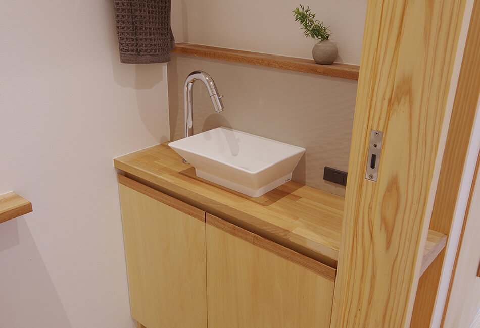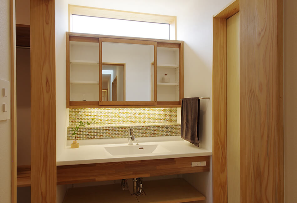 子供が小さく、これから洗濯物が増えていくことが予想されるので、洗濯などの家事動線は最短になるように計画し、日々のストレスが極力無くなるようなプランとした。