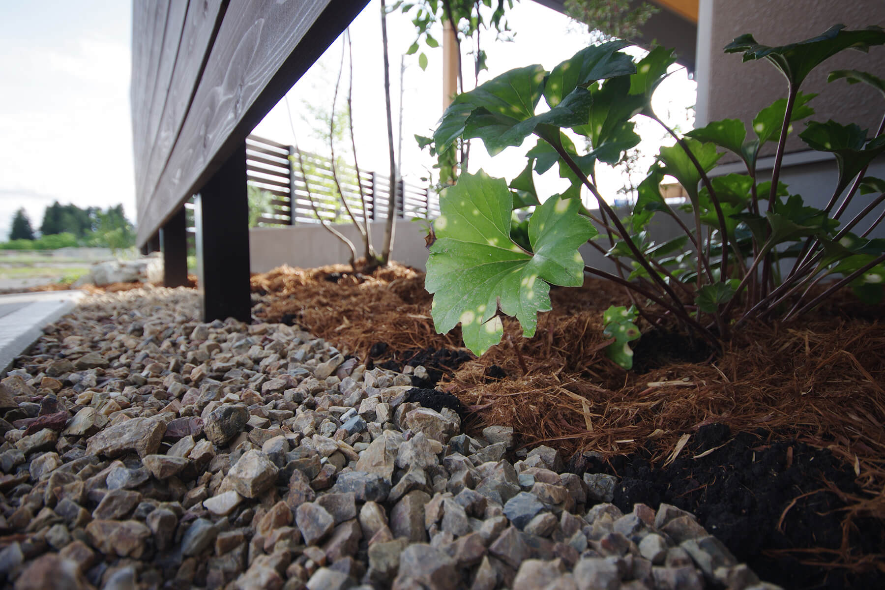新しい分譲地はどことなく乾いた印象がある。これからこの建物が醸成され、敷地内に植えた緑が成長することで、潤いのある街並みが形成されることを願っている。