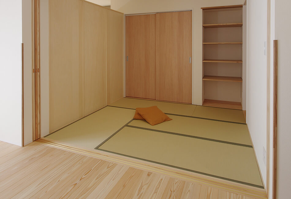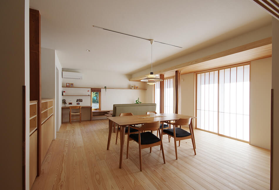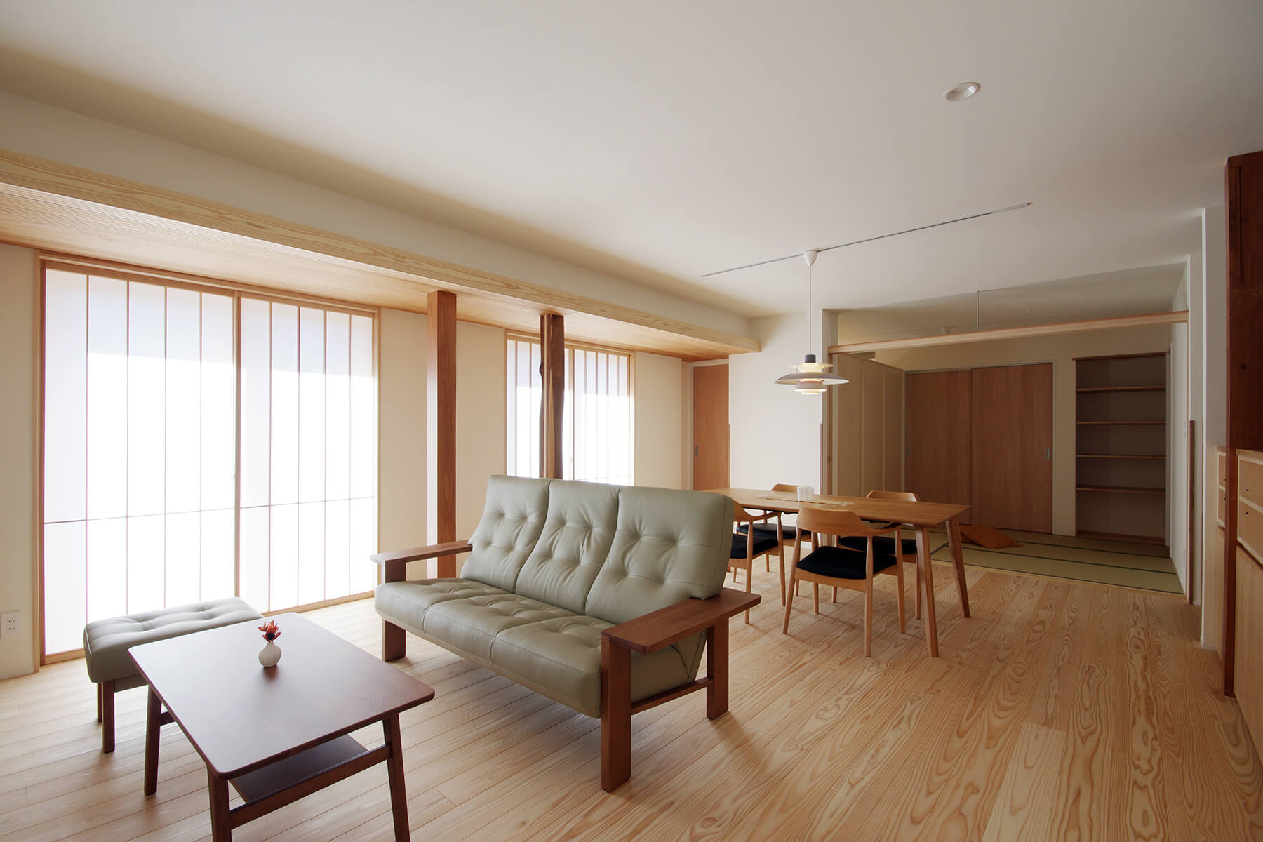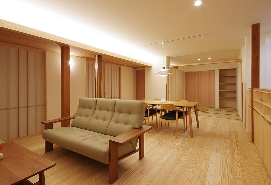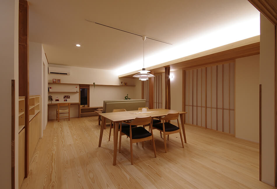 使用頻度が低く、床の間と押入で分かれていた2つの和室はリビングダイニングとし、常に人がいる場所に変換した。